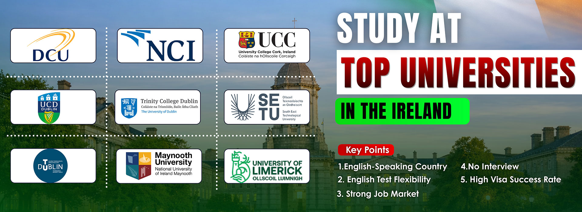 Whether you are interested in undergraduate, postgraduate, or doctoral programs, we are here to support you every step of the way. Choose Triospace Overseas, and let’s make your dream of studying in Ireland a reality together.